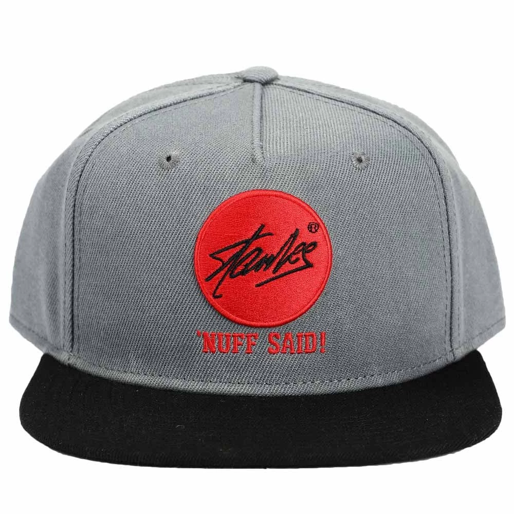 Stan Lee was an American comic book writer, editor, publisher, and producer. He rose through the ranks of a family-run business to become Marvel Comics’ primary creative leader for two decades, leading its expansion from a small division of a publishing house to a multimedia corporation that dominated the comics and film industries. This officially licensed Marvel snapback features Stan Lee’s signature embroidered on the front with the phrase “Nuff Said” below. A true collector piece!