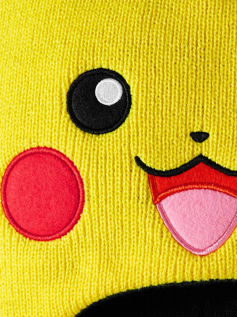 Cute and comfy come together in an irresistible way with this Pokemon Pikachu laplander hat for juniors. Made from ribbed-knit acrylic shell and full black fleece lining for warmth and comfort, this cool, must-have beanie has been created from embroidered face detailing along with 3D knitted and stuffed ears on top. Finished with 10″ long laplander ropes that end in Pokeball, this cozy knit cap is sure to become your cold weather go-to accessory! This officially licensed product is great for showing off the things you care about, and makes a great gift for fans of Pikachu.