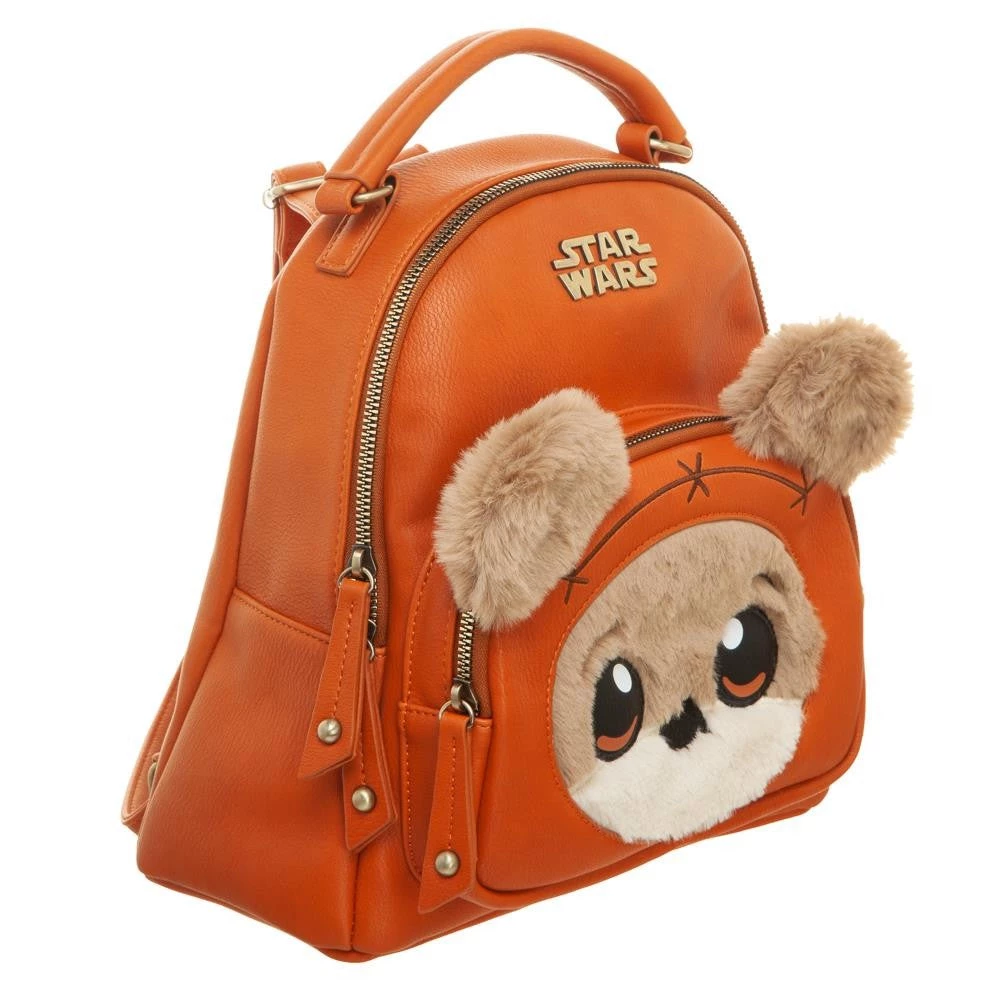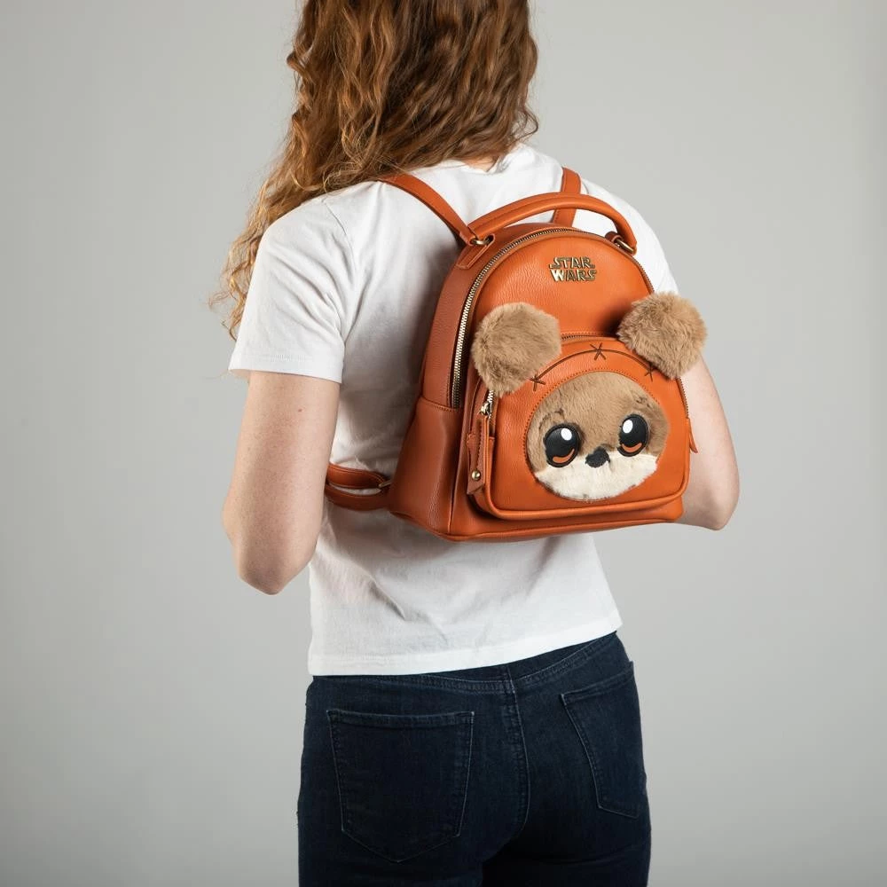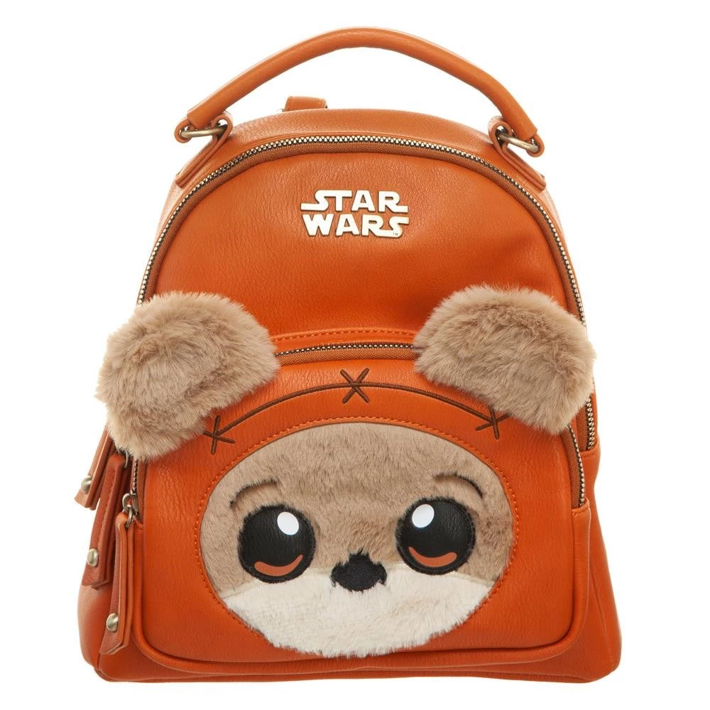This Star Wars mini backpack is definitely the cutest thing in the galaxy! It is a fuzzy Ewok!  Ewoks are a fictional species of small, furry mammaloid bipeds that appear in the Star Wars universe. They inhabit the forest moon of Endor and live in various arboreal huts and other simple dwellings.