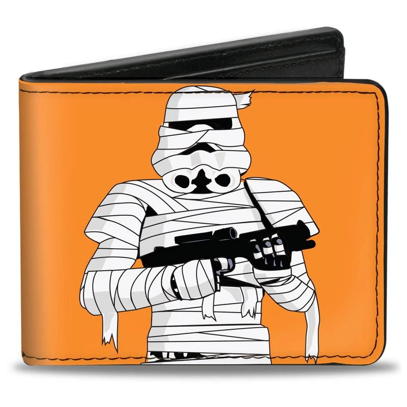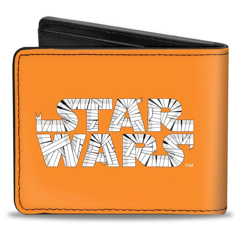 This awesome men’s bi-fold wallet is made from premium vegan leather. It measures 4.0×3.5×0.5 Inches, and features the standard billfold, 5 card slots, and windowed ID holder. The logos are applied using advanced printing technologies, so the wallet will still look good after years of hard use. This product is Made in the USA by Buckle-Down, Inc. and Officially Licensed by Lucasfilm Ltd.