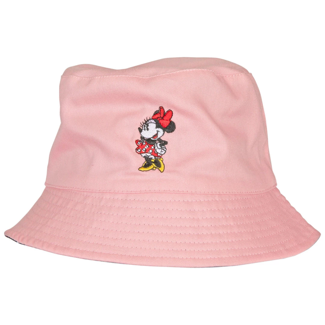 Officially licensed Disney Minnie Mouse Character and All Over Symbols Reversible Bucket Hat. Made from polyester, this pink and black reversible Disney bucket hat features a classic Minnie Mouse character and logos all-over print design