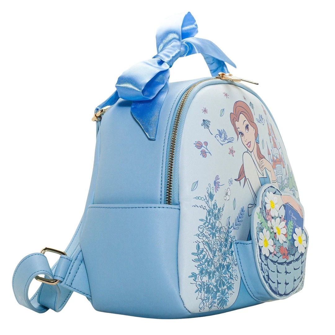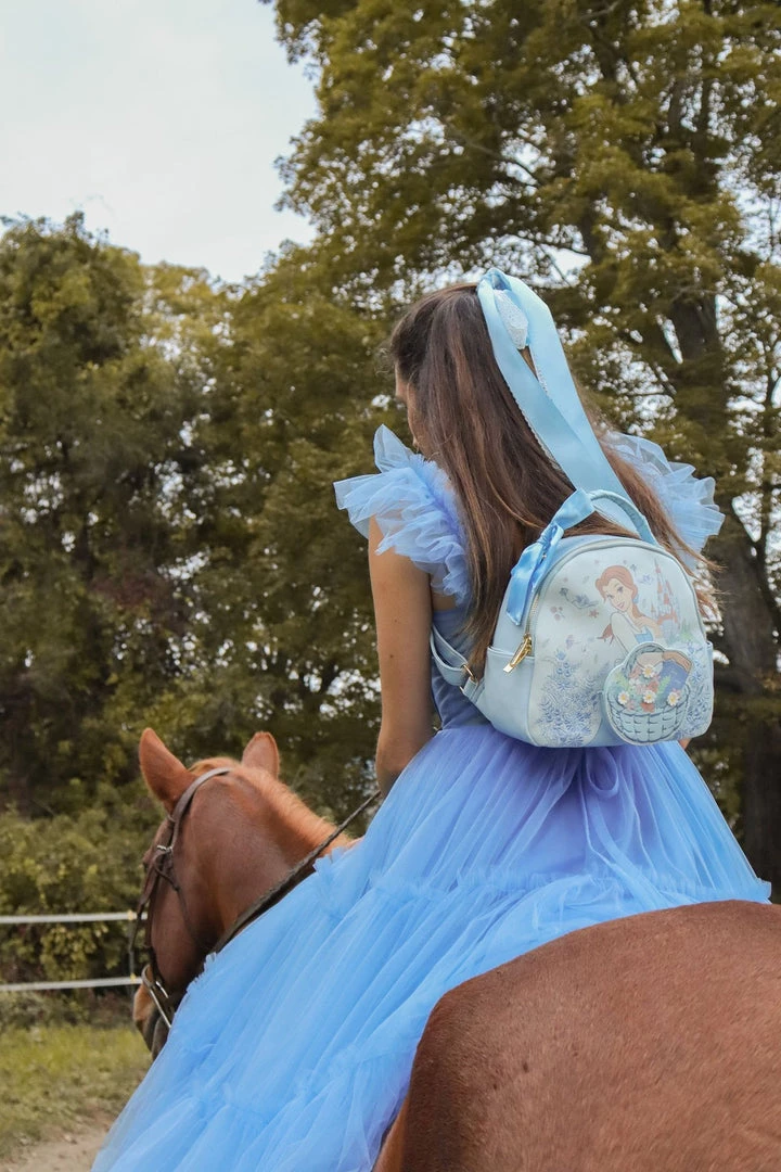 Bonjour! Explore with the most enchanting backpack, inspired by Belle’s Parisian village from Beauty and the Beast. The front die cut pocket features a woven basket, and the base of the bag has light blue floral embroidery and a print of your favorite princess. A bow ribbon decorates the top corner of the bag, and the backpack has adjustable straps for easy wear. An interior pocket will keep all your necessities organized for your next adventure.