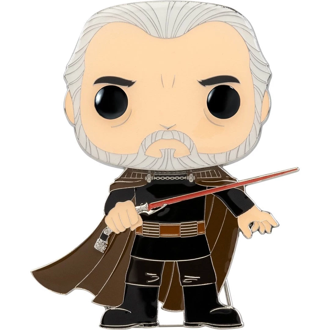 This Star Wars Count Dooku Large Enamel Pop! Pin measures approximately 4 1/2-inches tall, just like the Pop! Vinyl Figure it’s based on. Not only does the pin have the standard pin backings so you can attach it to bags or a cork board; it also has a “Funko Crown” pin stand allowing it to stand up for a dynamic display! True to it’s namesake, the head is raised making it pop from the body. This large Pop! Pin comes packaged in a window display box.