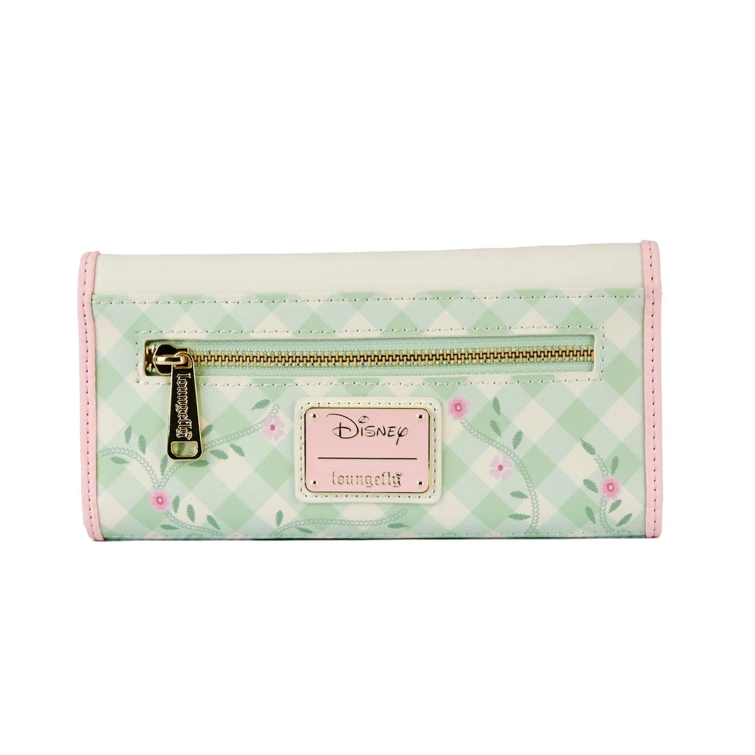 Embark on rejuvenating spring escapades Bambi and friends with the Bambi Spring Time Tri-Fold Wallet! The design features Flower, Thumper, wildflowers, and foliage motifs. On the front you’ll find a decorative pink bow, as well as Thumper and Flower among ferns and wildflowers. The back has embroidered flowers over the soft green and cream-colored gingham pattern. The wallet has 6 slots for holding cards, and a clear window slot for holding your ID. It’s a delightful design that is a must have for any Bambi collection.