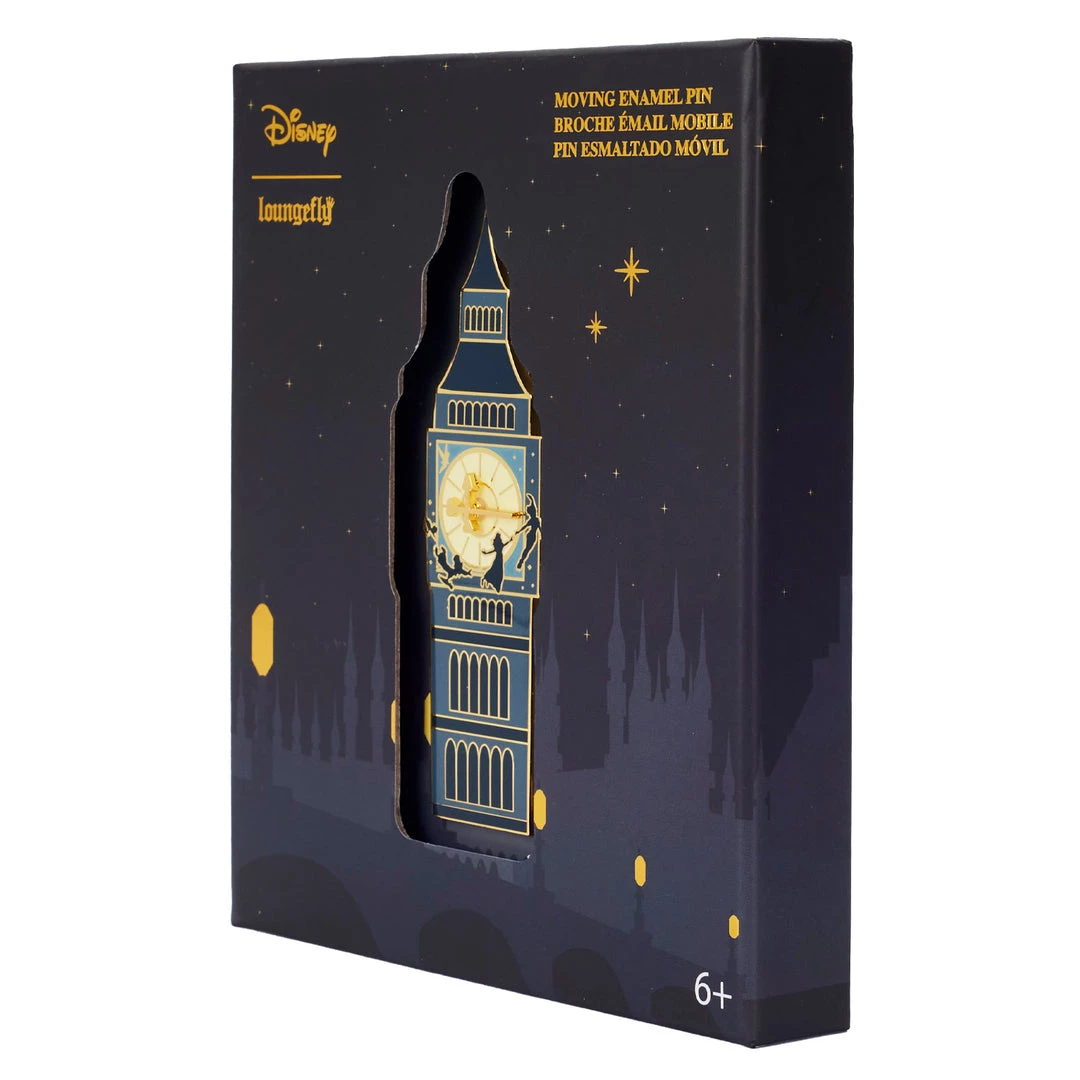 Tink’s pixie dust has set the wheels in motion. Peter Pan will whisk the Darling children away to Never Land. Hang on tight to witness this scene up close with this limited-edition Loungefly Peter Pan Glow in the Dark Clock Moving Pin. The front reveals the shadows of Peter Pan, Wendy, Michael, John, and his teddy bear, flying right past Big Ben. Perched near the clock’s arrows is Tinker Bell in gold. In the dark, the entire face of the clock glows. This 3-inch pin is a great accent to any Disney outfit, and is the perfect accessory for Disney fans who are looking to keep one of their favorite animated movies close.