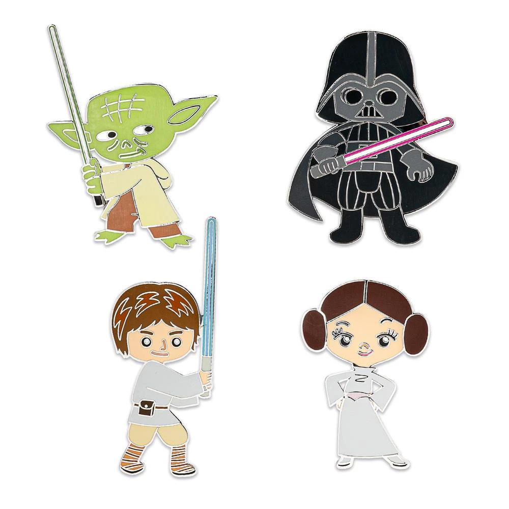 Expand your Star Wars™ pin collection with the Loungefly Star Wars 4pc Enamel Pin Set. There’s Princess Leia™, Luke Skywalker™, Master Yoda™, and Darth Vader™. These enamel pins of the classic characters from the original trilogy make adorable additions to any Star Wars inspired outfit or pin display.