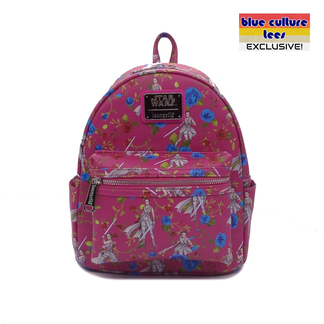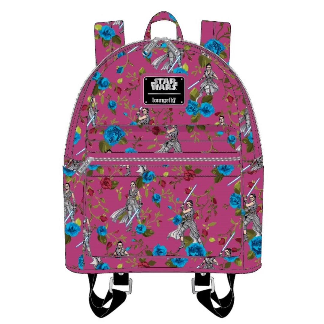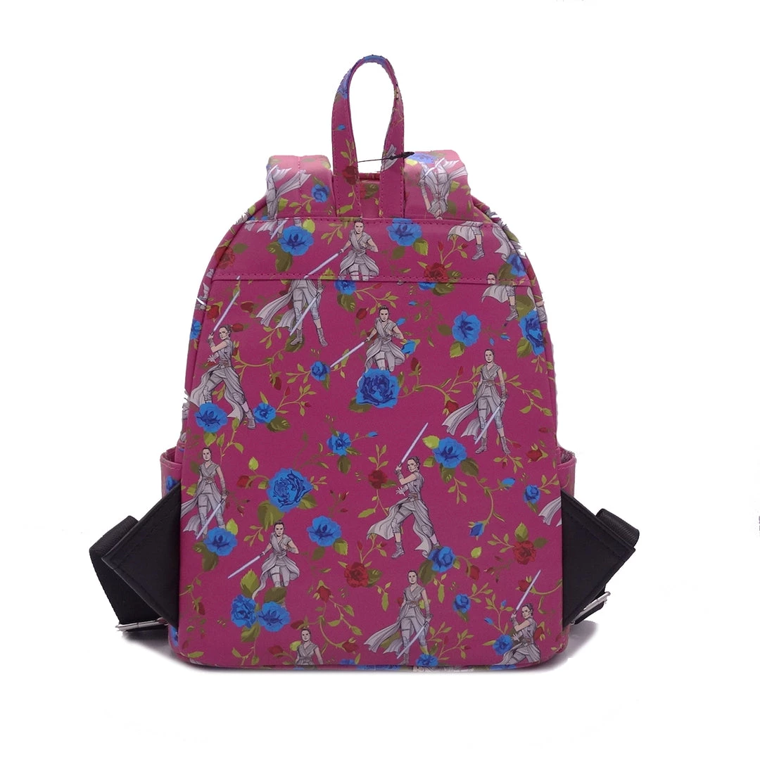 This mini backpack is a vibrant Raspberry AOP featuring Rey surrounded by beautiful Blue and Red flowers representing the struggle between the Jedi and the Sith.Â