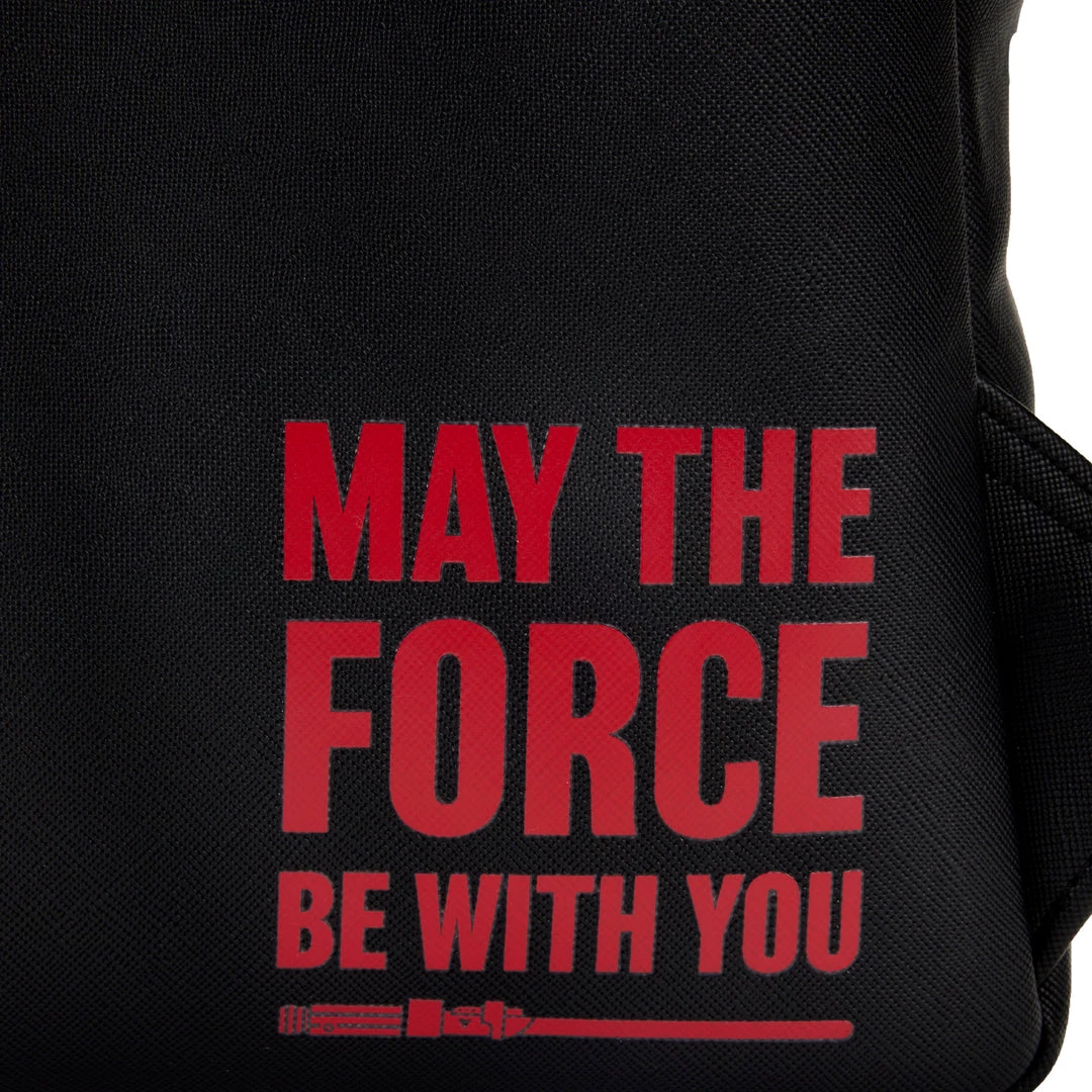 Shield your possessions with the power of the Force with this Star Wars Prequel Trilogy Triple Pocket Mini Backpack. Three zipped compartments on the front are dedicated to scenes from Star Wars movies including The Phantom Menace, Attack of the Clones, and Revenge of the Sith. On the back, the words “May the Force be with you” offer protection.