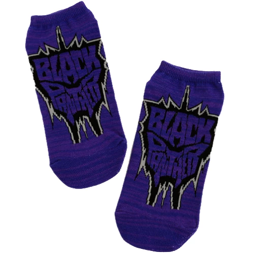 Hero. Legend. King. And sock! These heather purple no-show socks from Marvel feature the Black Panther logo.