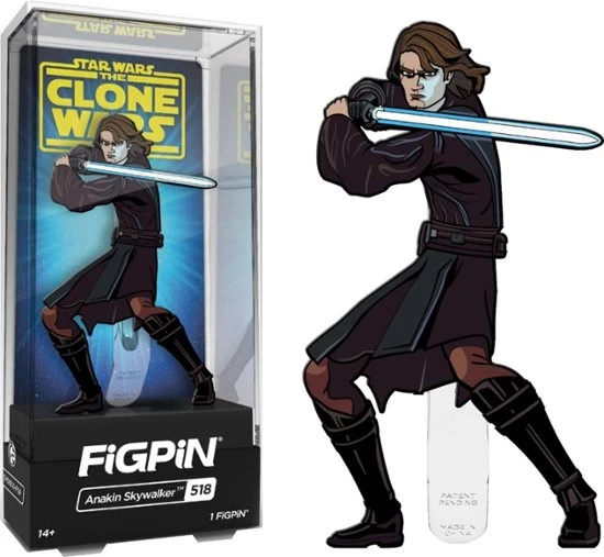 From Star Wars: The Clone Wars animated series comes this Anakin Skywalker 3-inch FiGPiN Classic enamel pin! This Anakin Skywalker FiGPiN Classic Enamel Pin is #518. The premium hard enamel 3-inch tall FiGPiN is amazingly detailed and is able to stand up with the signature FiGPiN rubber backer stand. The pin comes displayed in front of a backer card and is fully capsulated in the ultra collectible FiGPiN clear protector case. Enhance your FiGPiN collector experience with unique ID codes on the back of each pin. The unique ID code will provide cool details such as the edition run, sequence number in the edition, artist bio, wave information, manufactured date, and rarity scale. Build and share your collection! Ages 14 and up.